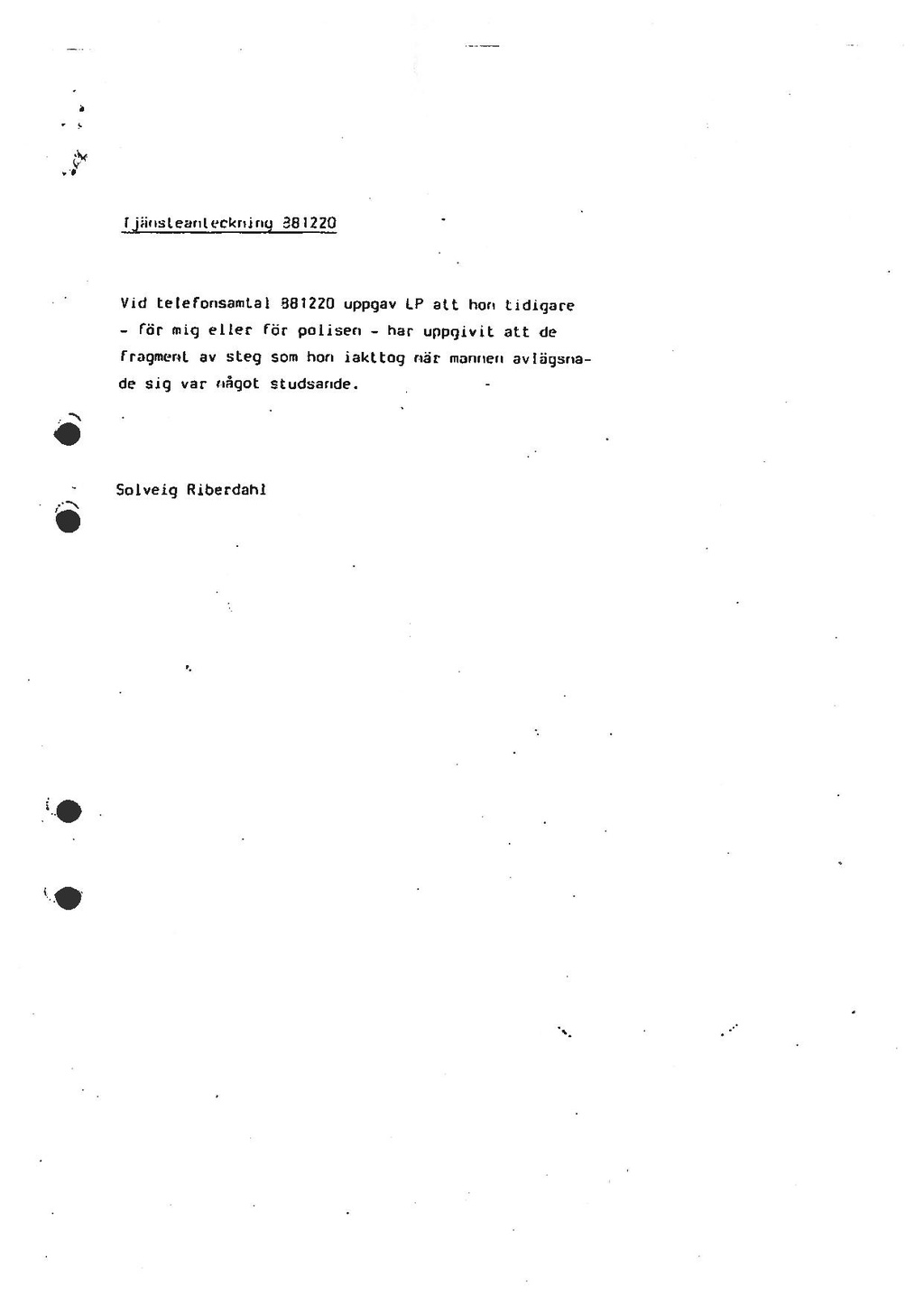 uppgav Lisbeth Palme att hon tidigare - för mig eller för polisen - har uppgivit att de fragment av steg som hon iakttog när mannen avlägsnade sig var något studsande.