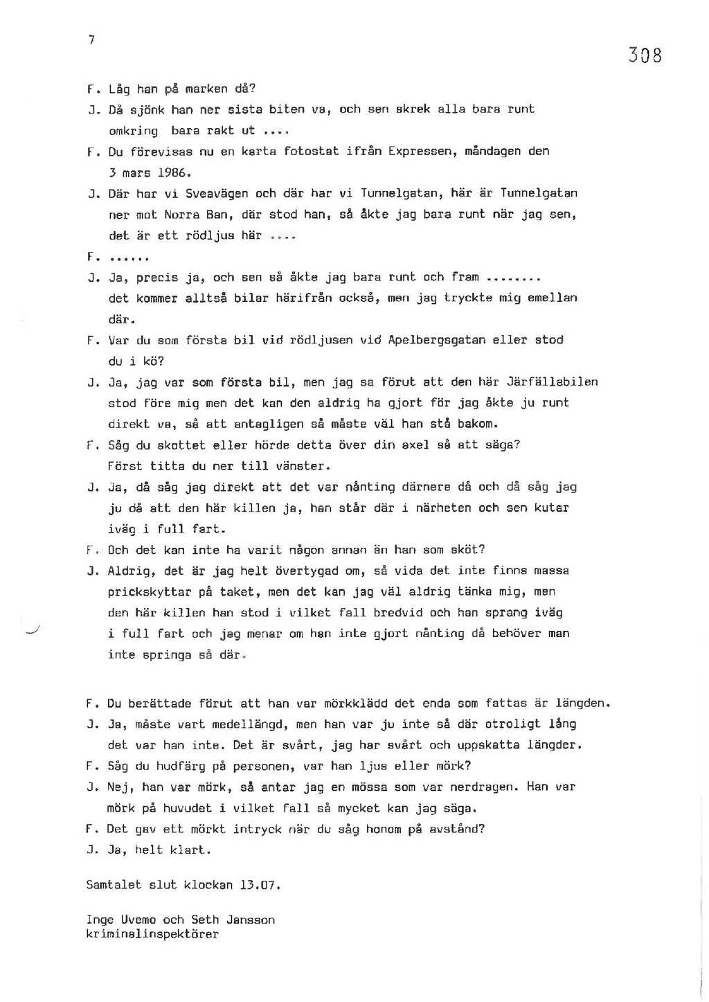 F: Du förevisas nu en karta fotostat ifrån Expressen, måndagen den 3 mars 1986.