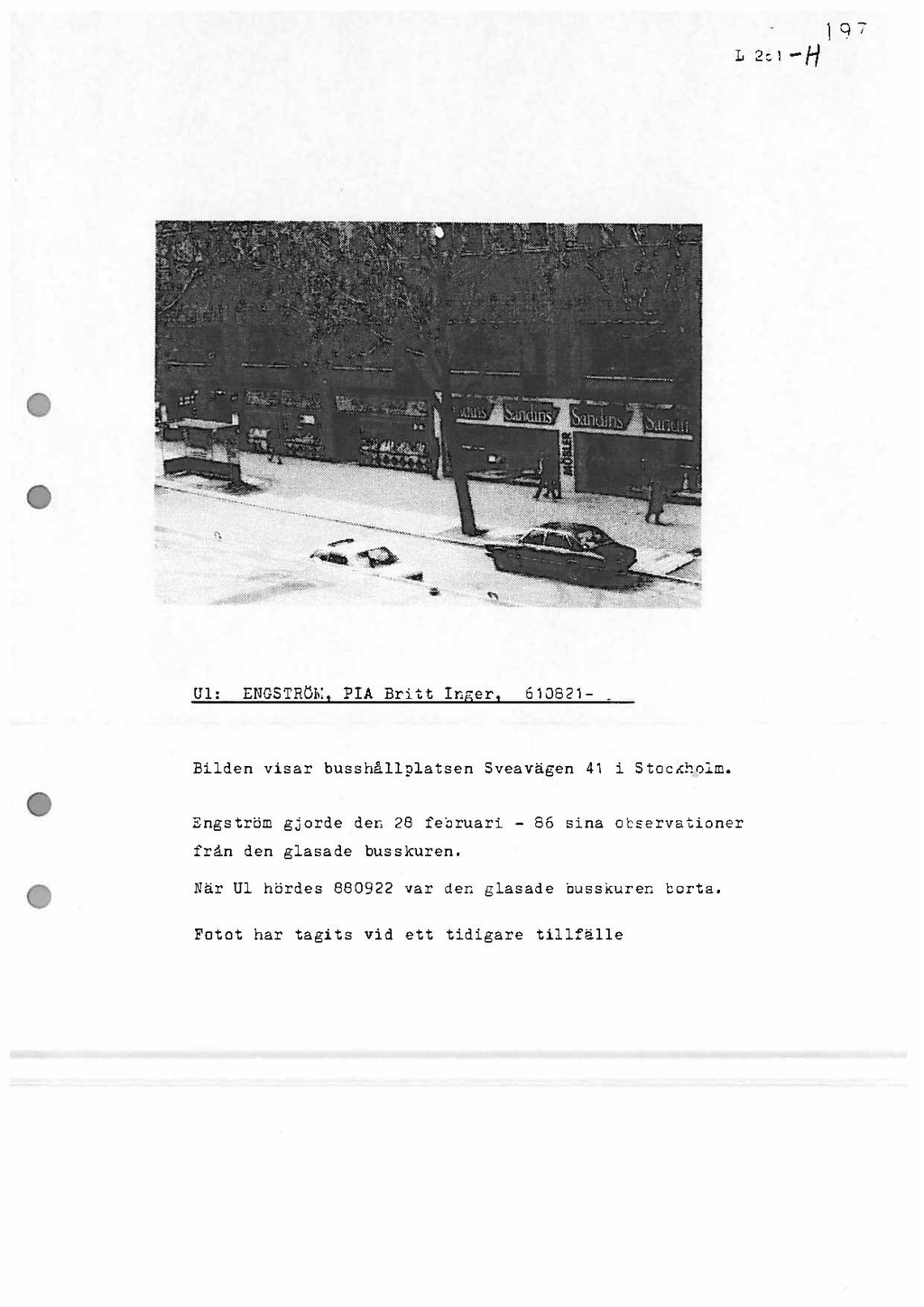 När Engström hördes 1988-09-22 var den glasade busskuren borta.