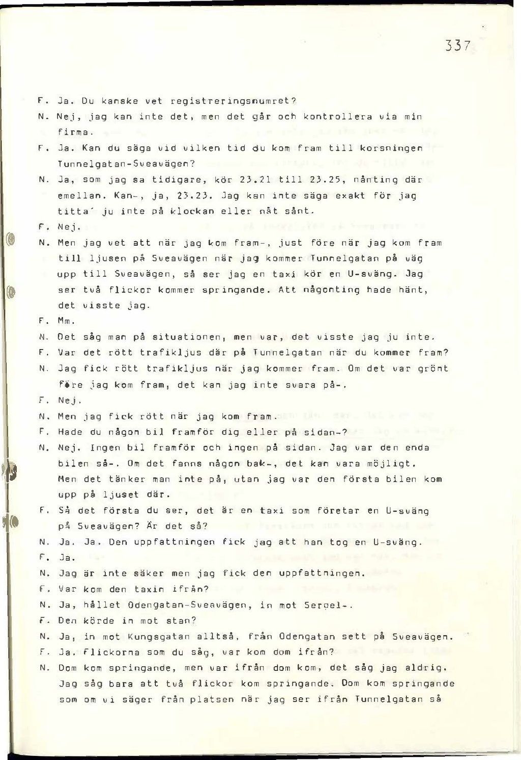 Jan Nilsson: Men jag vet att när jag kom fram, just före när jag kom fram till ljusen på Sveavägen när jag kommer Tunnelgatan på väg upp till Sveavägen, så ser jag en taxi kör en U-sväng. Jag ser två flickor kommer springande. Att någonting hade hänt,det visste jag.