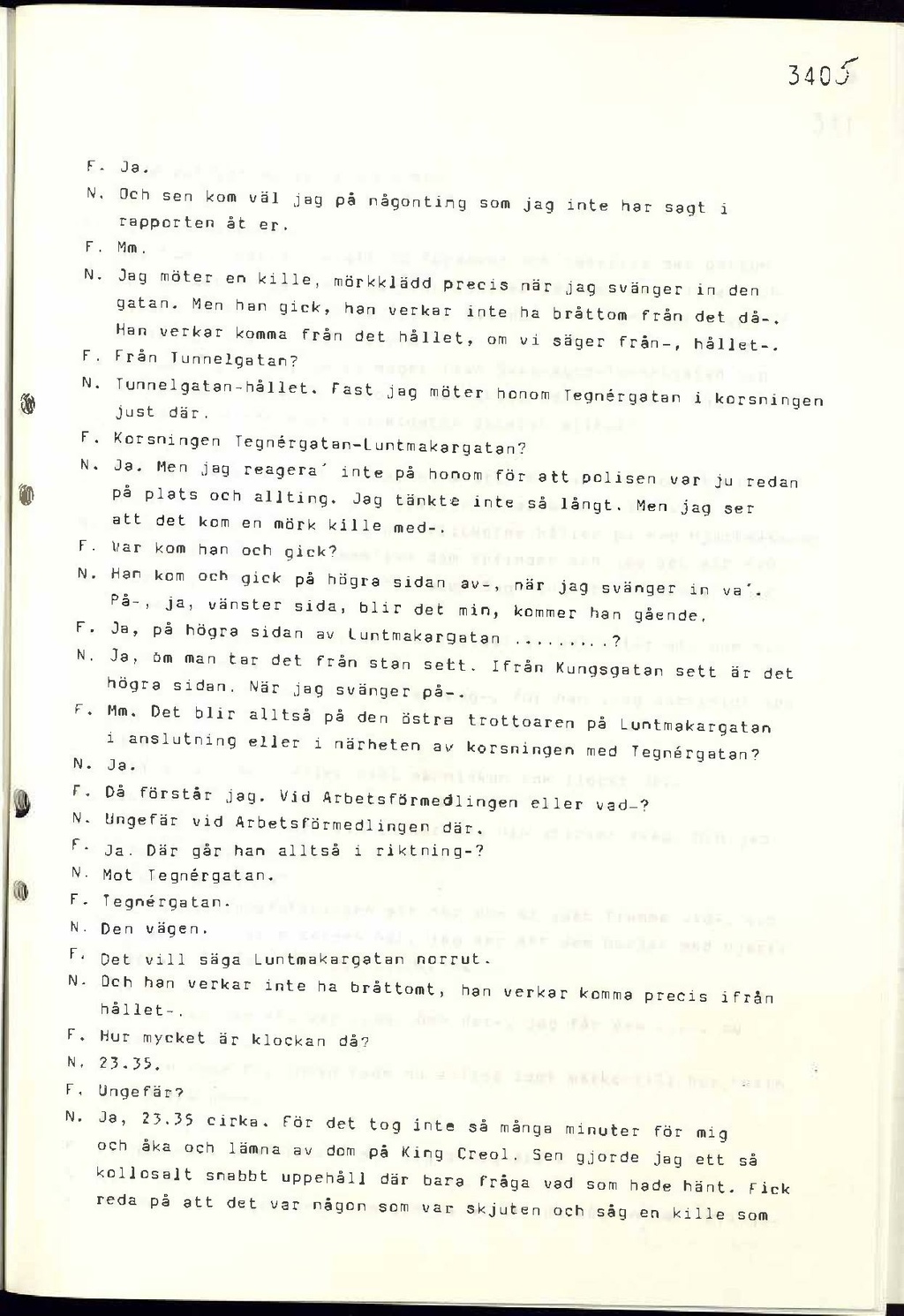 Jan Nilsson: Ja, 23:35 cirka. För det tog inte så många minuter för mig och åka och lämna av dom på King Creole. Sen gjorde jag ett så kollosalt snabbt uppehåll där bara fråga vad som hade hänt. Fick reda på att det var någon som var skjuten och såg en kille som
