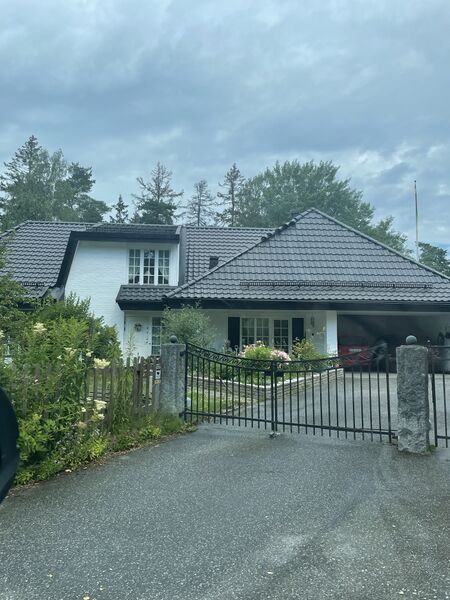 Lahällsvägen 64. Ett fint, stort hus i mexitegel där Stig bodde i 20 år.