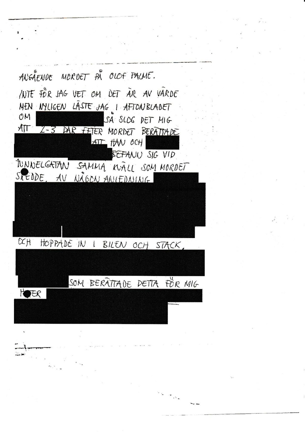 FÖR JAG VET OM DET ÄR AV VÄRDE NYLIGEN LÄSTE JAG I AFTONBLADET SA SLOG DET MIG 2-3 DAR FETER MORDET BERÄTTADE ATT HAN OCH
