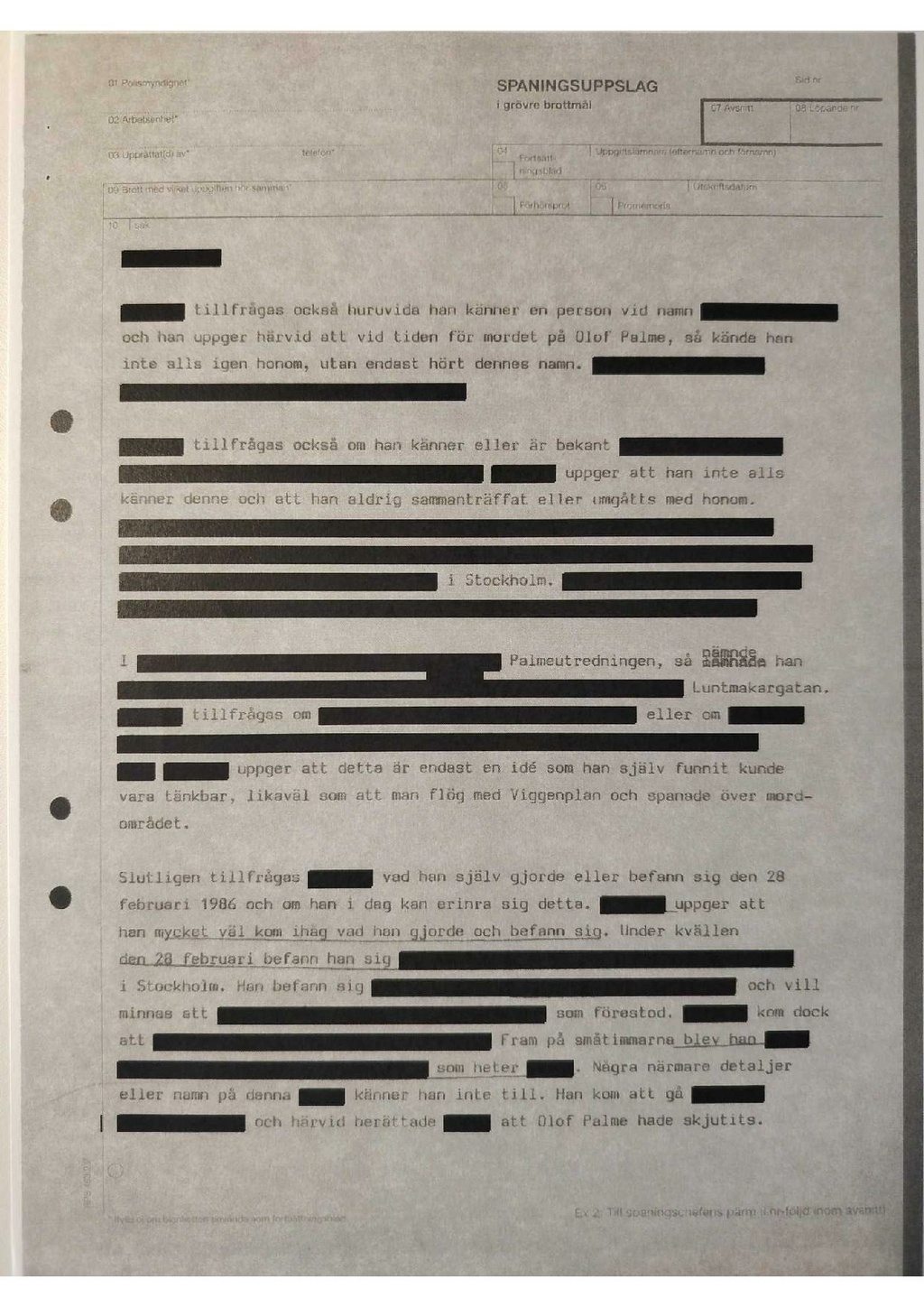 och han uppger härvid att vid tiden för mordet på Olof Palme, så kände han inte alls igen honom, utan endast hört dennes namn.