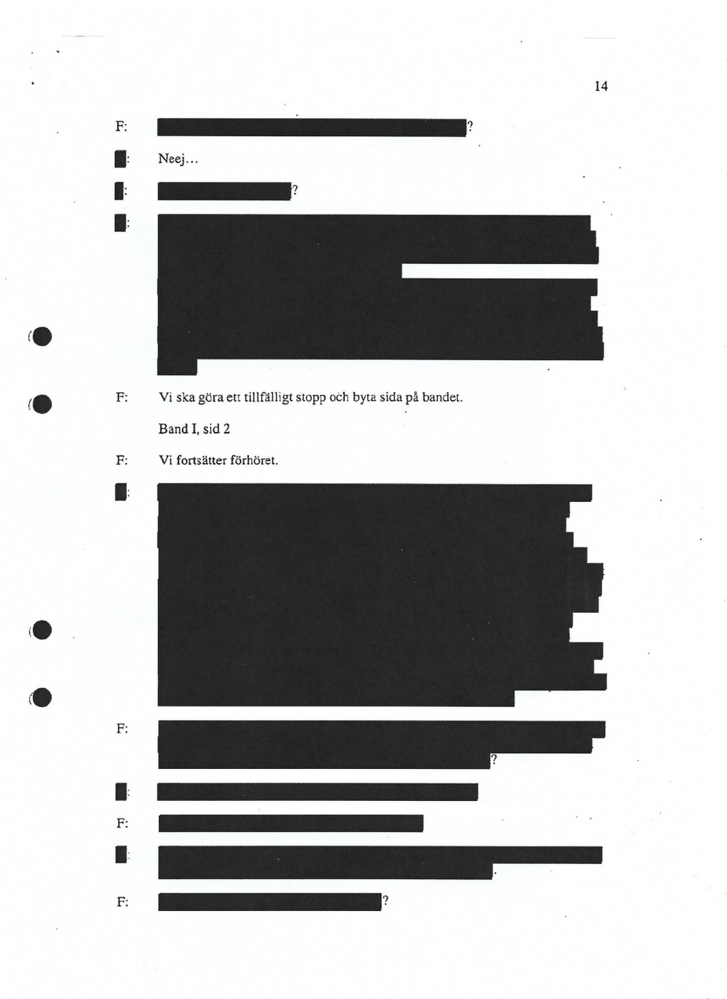 F: Neej... F: F: F: F: F: Vi ska göra ett tillfälligt stopp och byta sida på bandet. Band