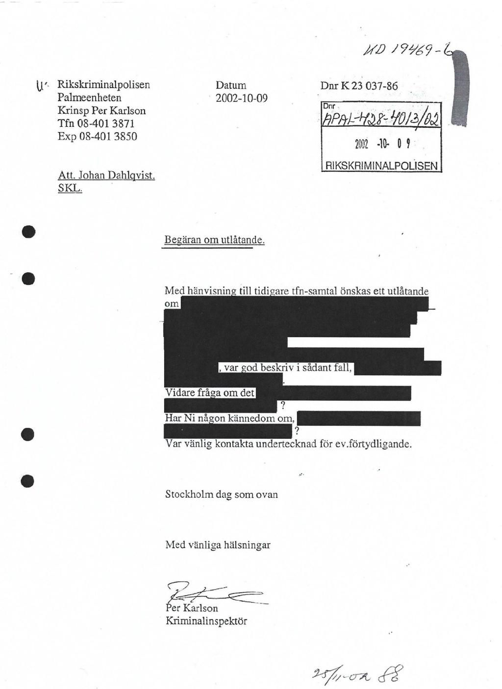 Med hänvisning till tidigare tfn-samtal önskas ett utlåtande