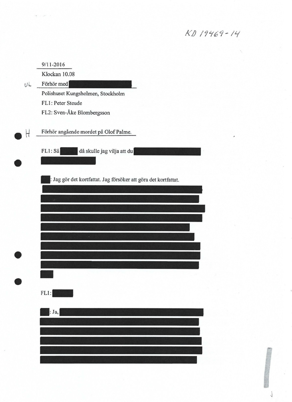 Förhör angående mordet på Olof Palme.