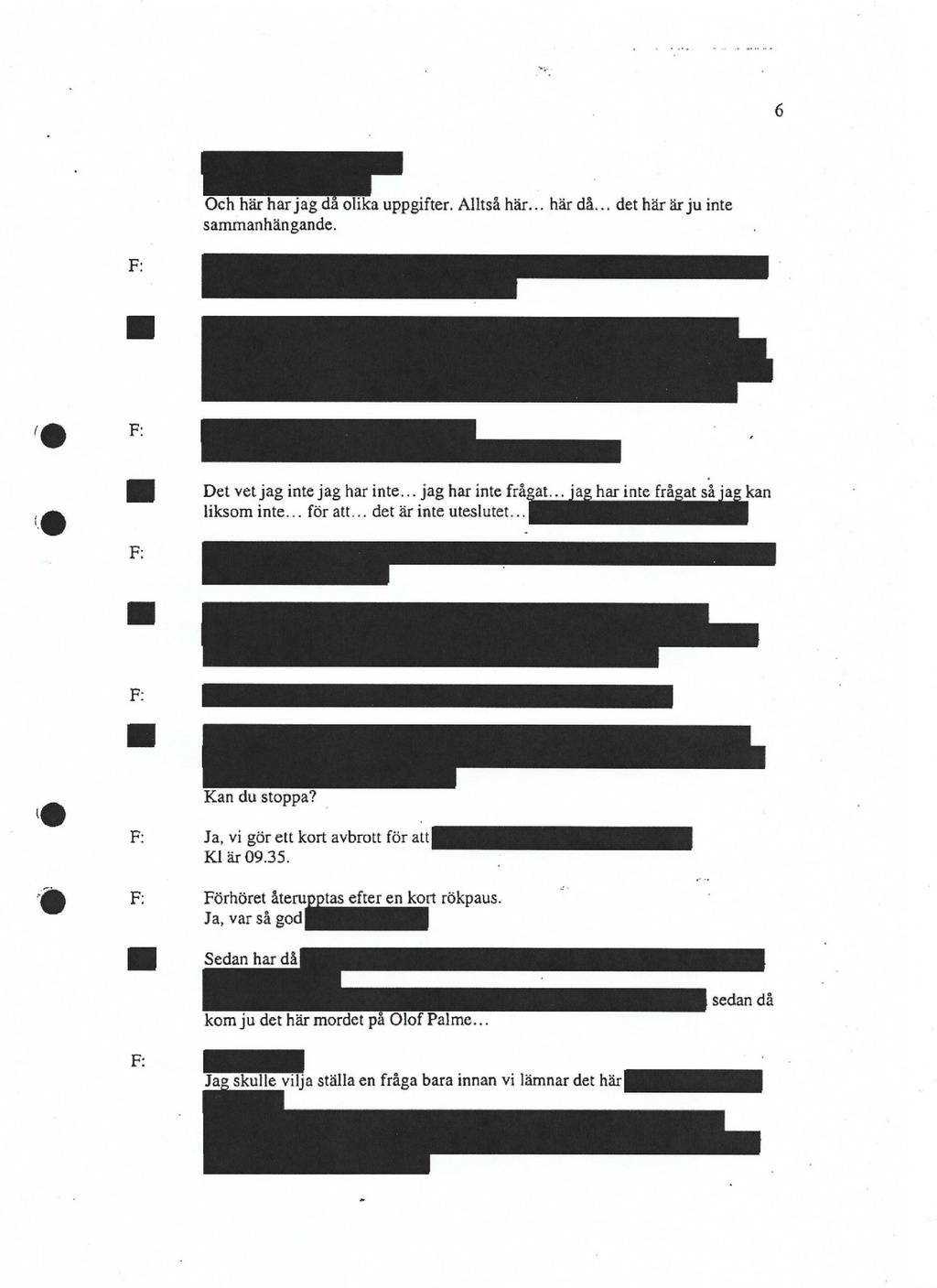 : Och här har jag då olika uppgifter. Alltså här... här då... det här är ju inte sammanhängande. Det vet jag inte jag har inte... jag har inte frågat... jag har inte frågat så jag kan liksom inte... för att... det är inte uteslutet... Kan du stoppa?