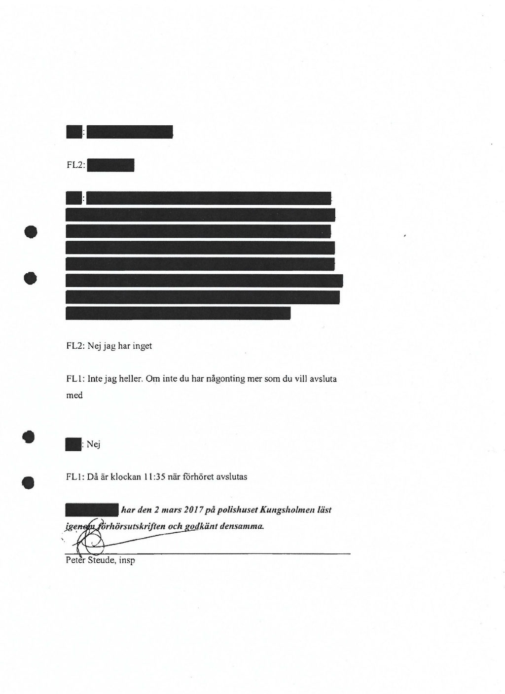 FL1: Då är klockan 11:35 när förhöret avslutas