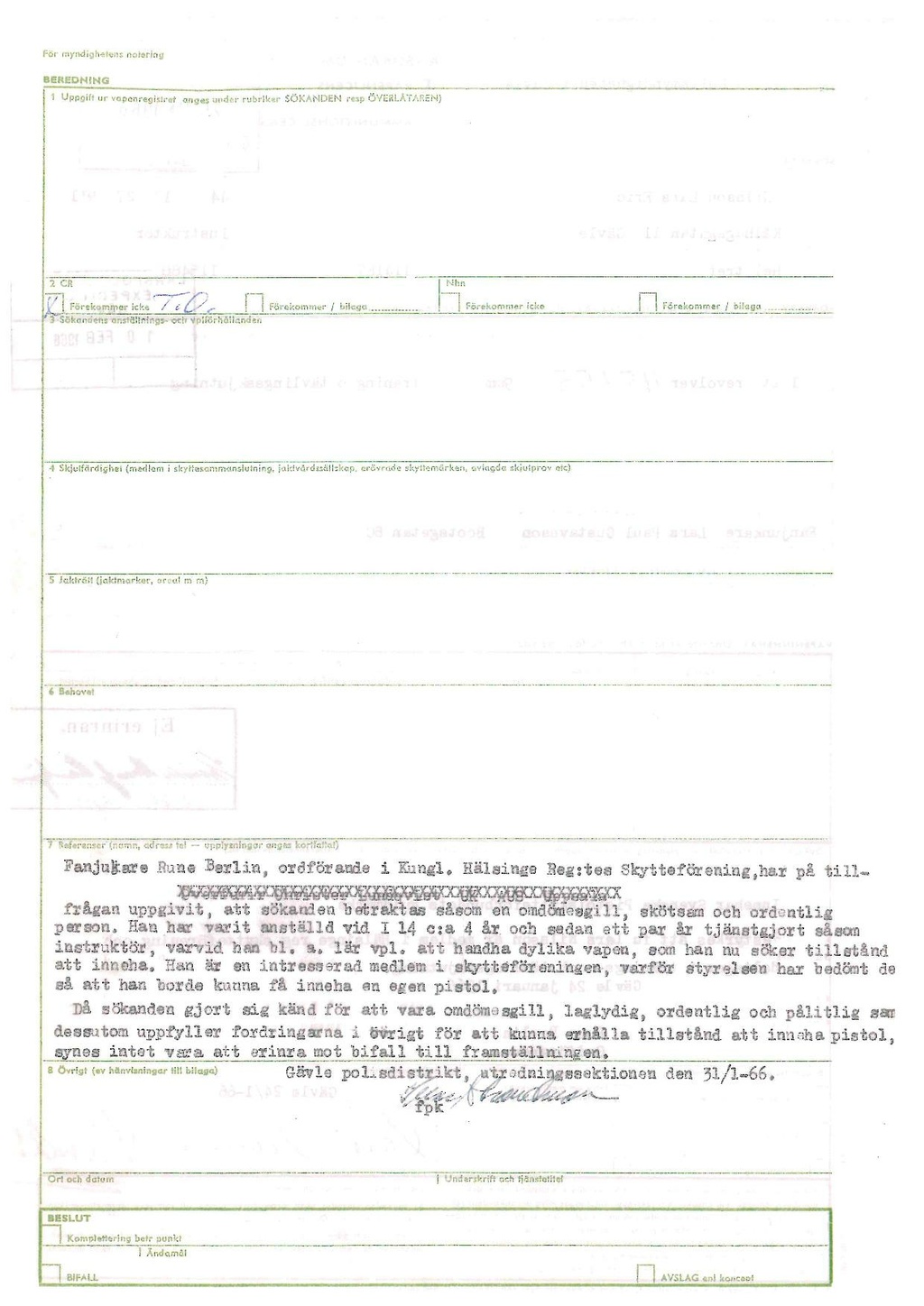 Gävle polisdistrikt, utredningssektionen den 31/1-66.