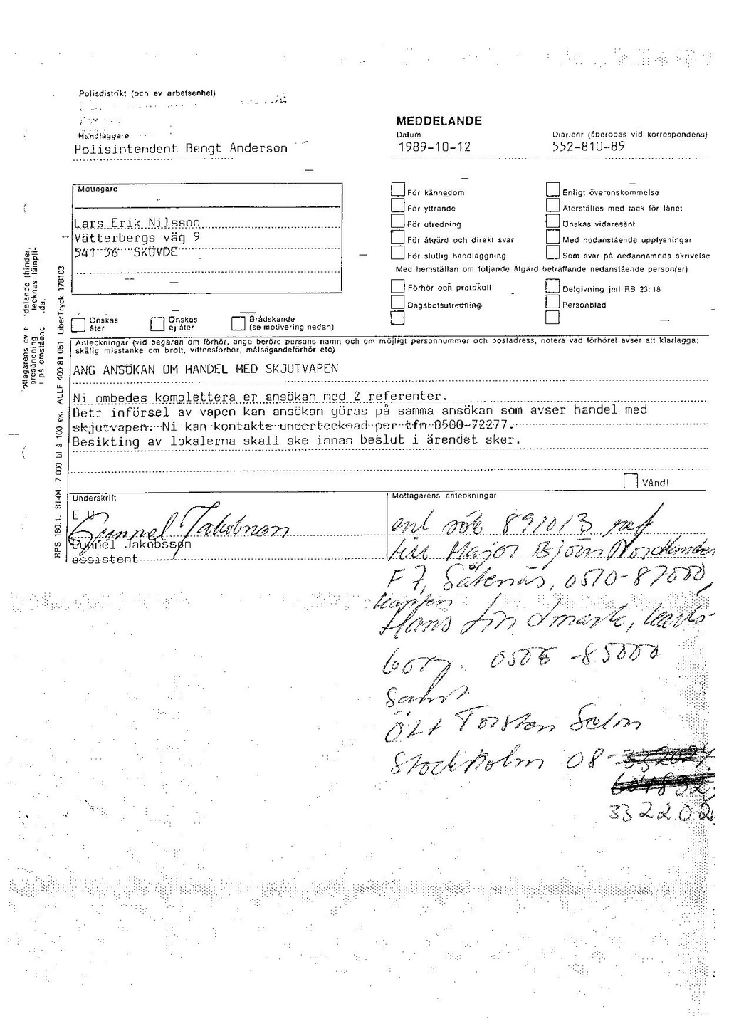 ANG ANSÖKAN OM HANDEL MED SKJUTVAPEN