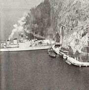 1968 HMS Sundsvall på väg in i en av Musköbasens fartygstunnlar. Marin Nytt nr 2 1969.jpg
